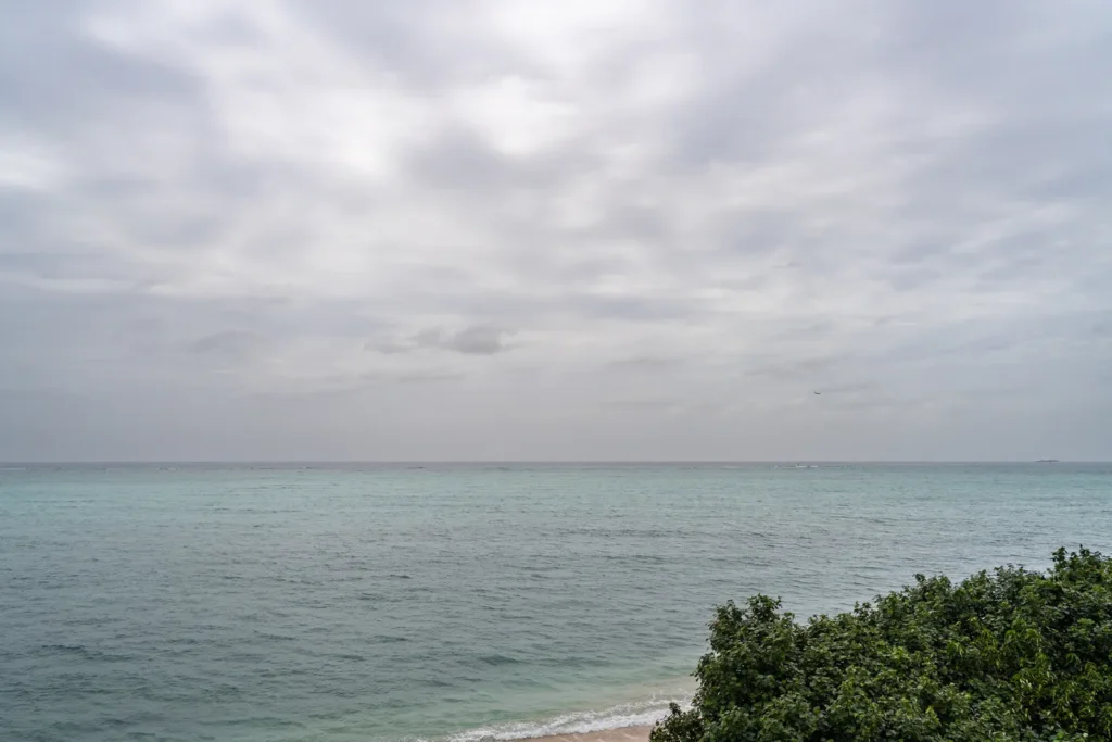 정오에 촬영한 오키나와 서해 바다입니다. 바람만 불뿐 많이 흐린 하늘입니다.