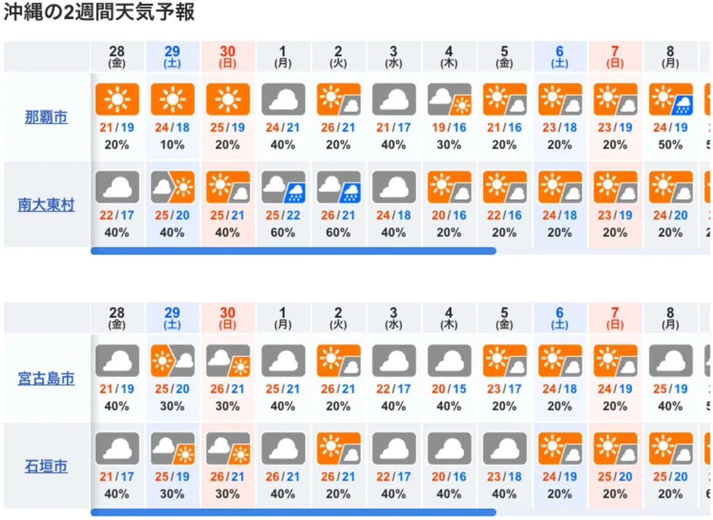 10일간 오키나와 날씨 예보도입니다. [출처: 재팬웨더뉴스]