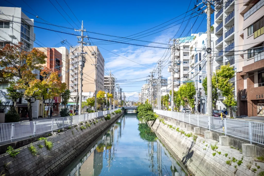 미에바시 하천에는 물이 상당히 많이 빠져있군요. 비가 올 예정인가 봅니다.